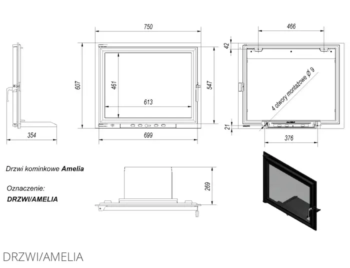 - дверцята викладено жаростійкою керамікою, яка витримує температуру до 660°C, та обладнано дефлектором повітря