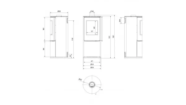 - полегшення монтажу печі завдяки отвору в основі - Ø200 мм,